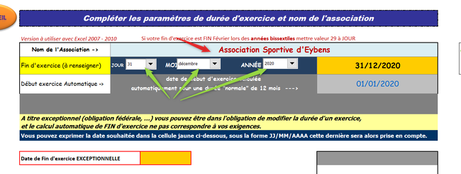 Commentaires: le NOM de l'association apparaitra sur les différents états comptables